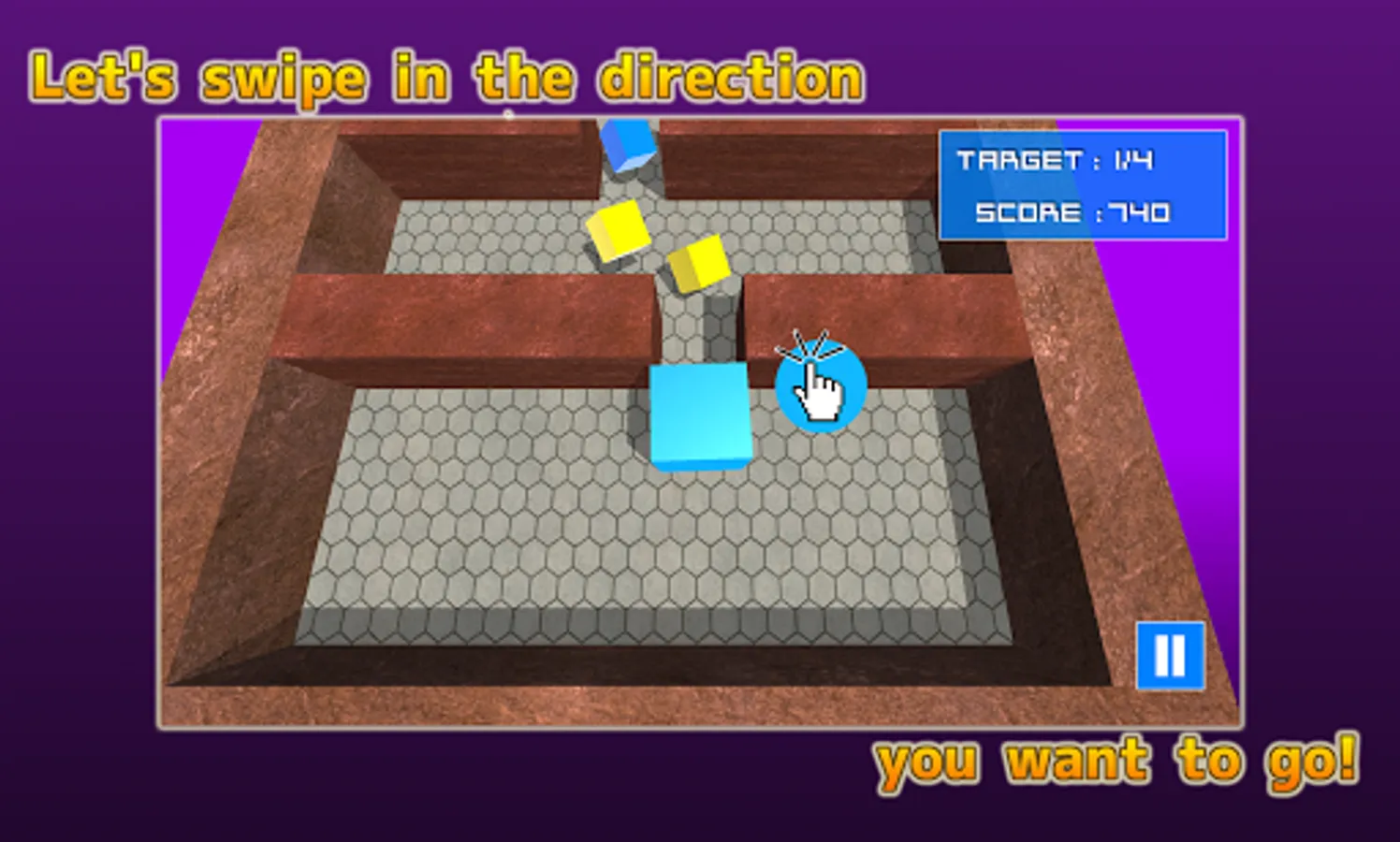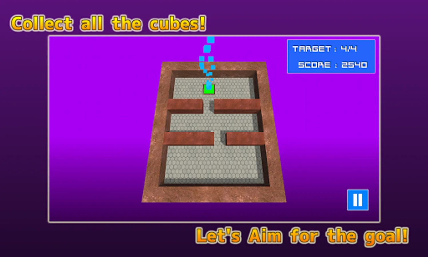 Operate the player's blue cube to collect small cubes in the labyrinth and reach the goal!