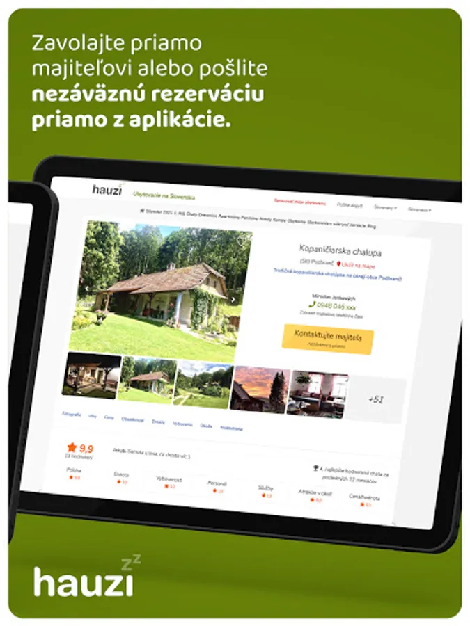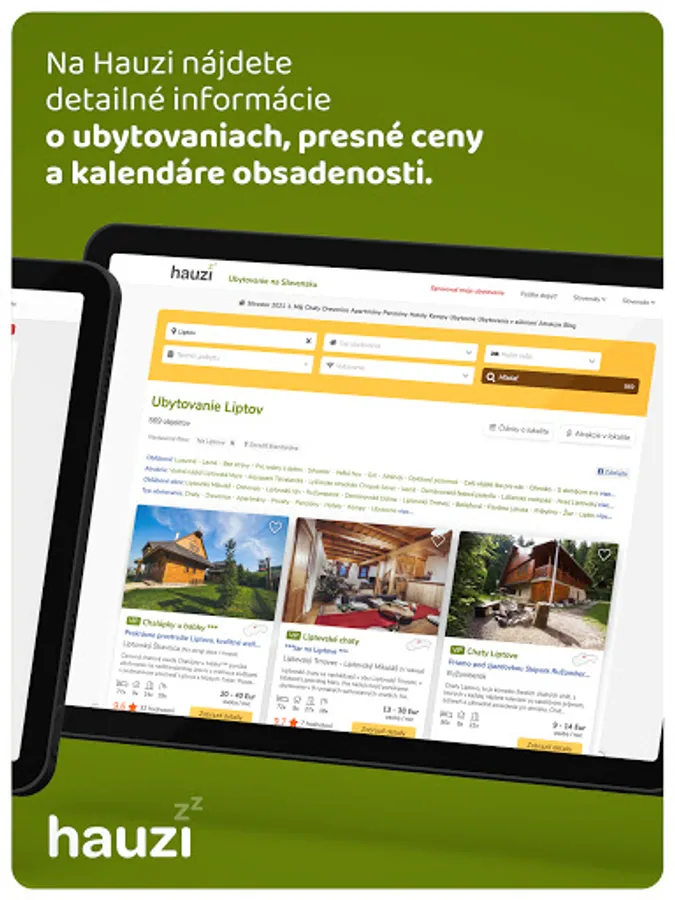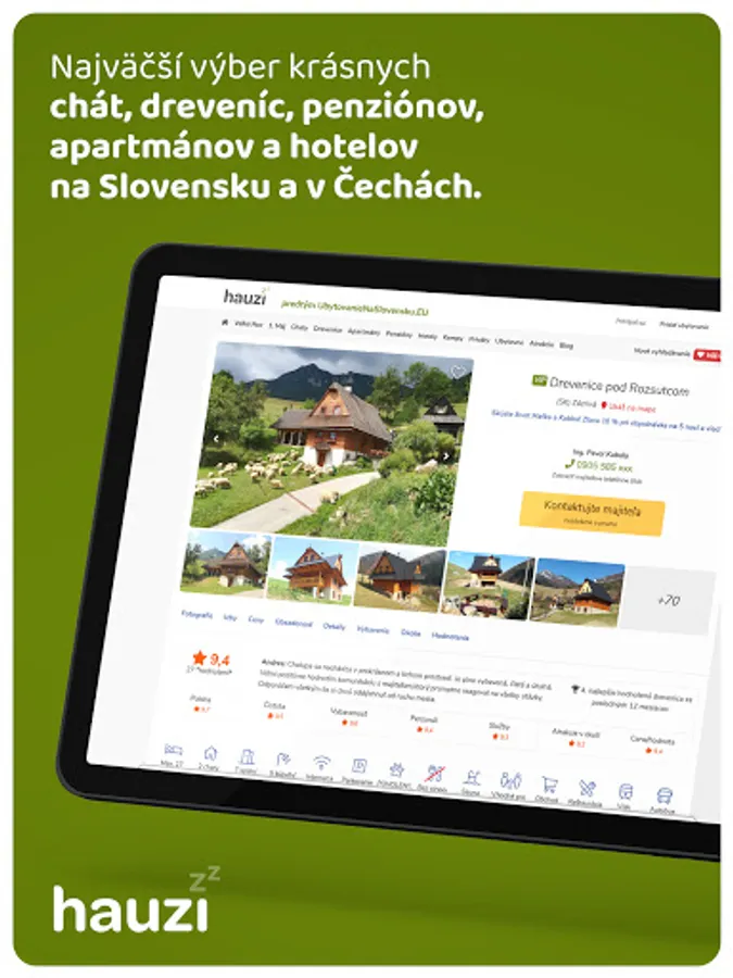 The largest selection of beautiful cottages, wooden houses, guesthouses, apartments and hotels in Slovakia and the Czech Republic. On Hauzi you will find detailed information about accommodation, exact prices and availability calendars. Call the owner directly or send a non-binding reservation directly from the application. Thousands of current ratings. Save your selection and share with friends.