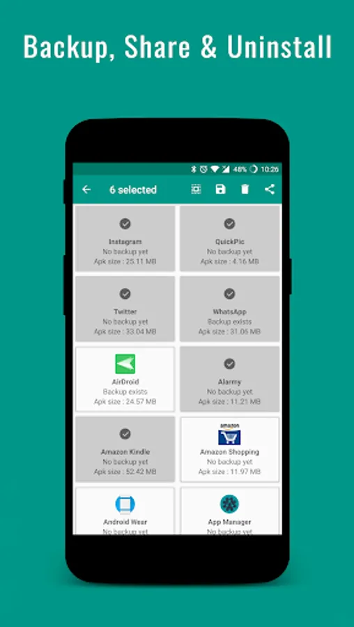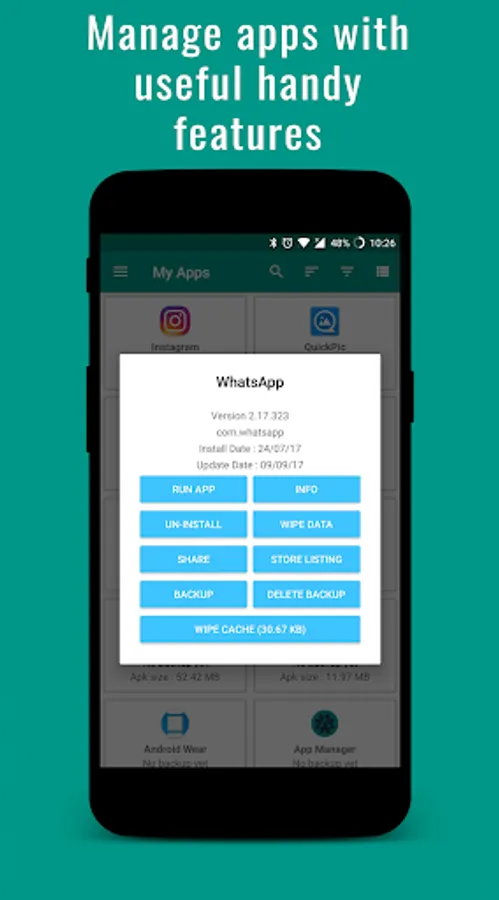 App Manager is the here to help you manage your apps with its simple and easy to use interface. It has all the features you need in an app manager. Below is the list of features.