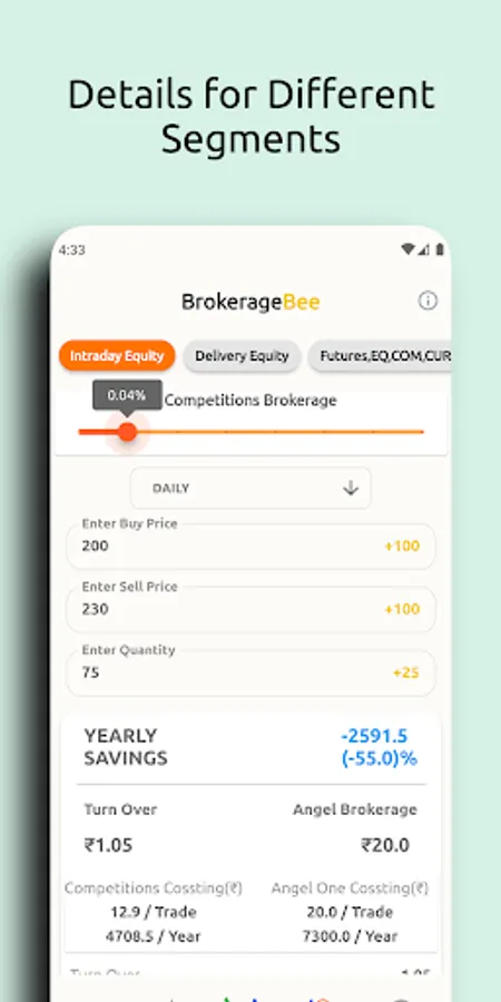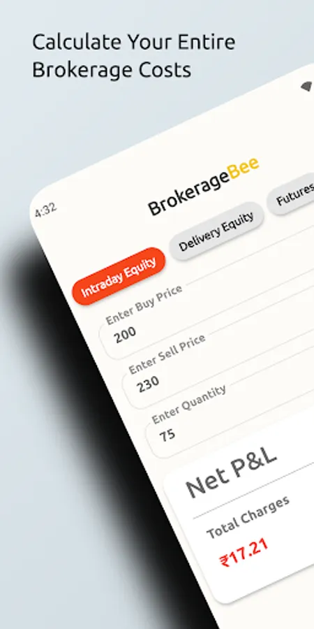 At BrokerageBee, you can calculate your entire brokerage costs and other transaction costs for your trading patterns even before you execute your trades by using our Brokerage Calculator - for both Intraday trading and Delivery or Carry Forward Trading.