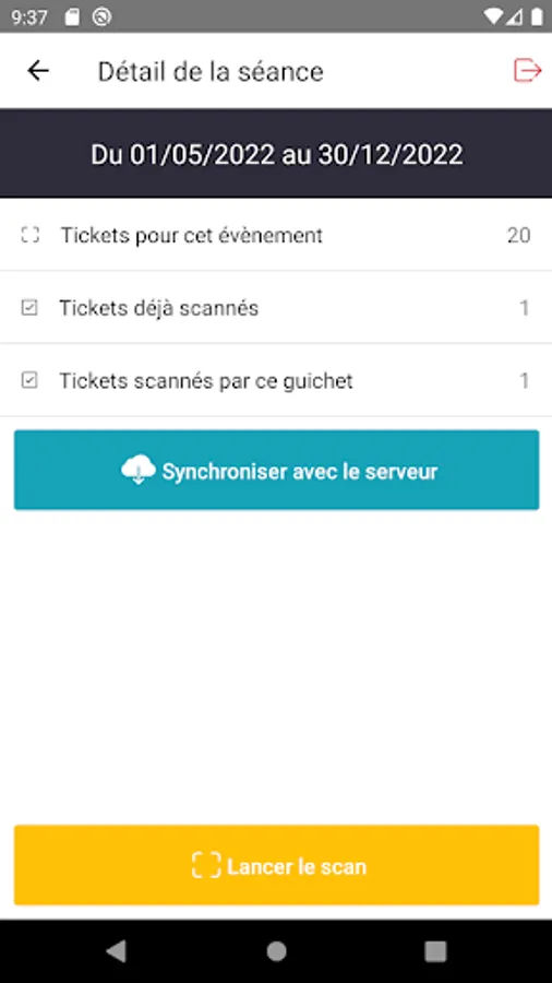 Counter for scanning tickets during events organized via the Havai'in platform