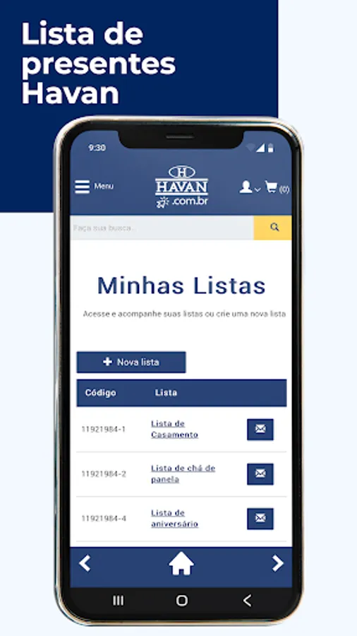 As important as living a special moment is his planning. That's why Havan created the Gift List app, with it you make your complete list, add products right from your phone, track everything by the app and the best: at no cost.
