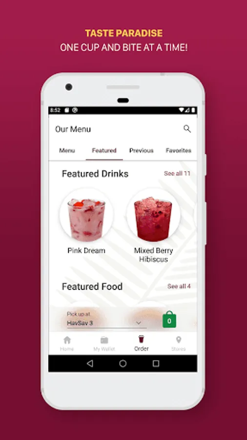 The Havana Savannah app is the best way to order and pay for your favorite beverages, food and more plus the only way to earn money back and heart rewards redeemable for beverages, food and more. Come, taste paradise. One cup and bite at a time.
