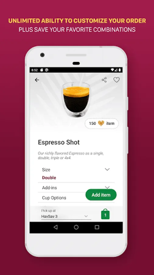 Use the app to customize, place and pay for pick-up, curbside or delivery.