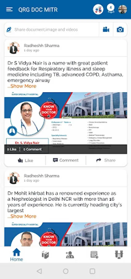 QRG Doc Mitr App helps doctors, clinical practitioners, corporate institutions and international partners to engage together in order to share their ideas, update research, publications, updates in medical fields, medical journals, medical event updates and taking second opinion. QRG Doc Mitr App is a step in revolutionizing clinical opinions with the help of clinical experts in their area with the use of technology. It aims to foster knowledge sharing through webinars, PPT, audio, video and backed up by expert comments and guidance. It also provides insights into patient care from time of admission to discharge, as it is linked to Hospital Information System (HIS).