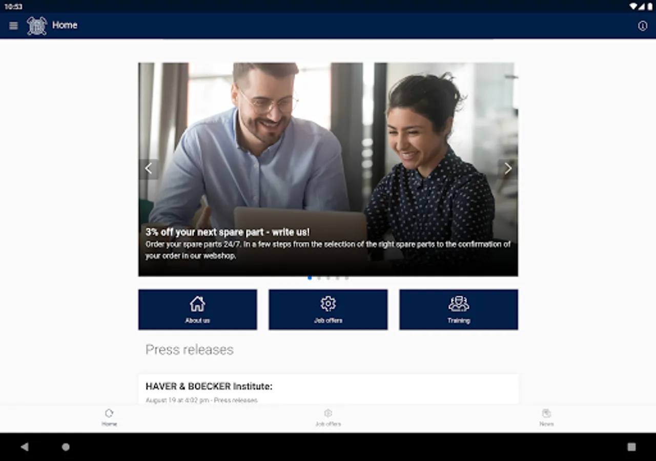 The app provides insights into the world of HAVER & BOECKER – mobile, fast and uptodate. It offers constantly new information about the company, its products and services. The offer also contains information on events and a diverse job and career section. There is much more to come in the HAVER & BOECKER App.