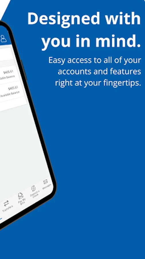 Easily access all of your accounts and features right at your fingertips with our mobile app. Manage your accounts, deposit checks, make transfers, pay bills and more!