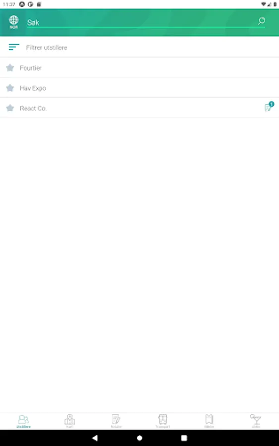 Naviger i messeområde. Finn leverandører i liste og kart. Bygg en besøksliste og skriv notater tilknyttet leverandørene. Få oppdatert info om transport og uteliv i Bergen.