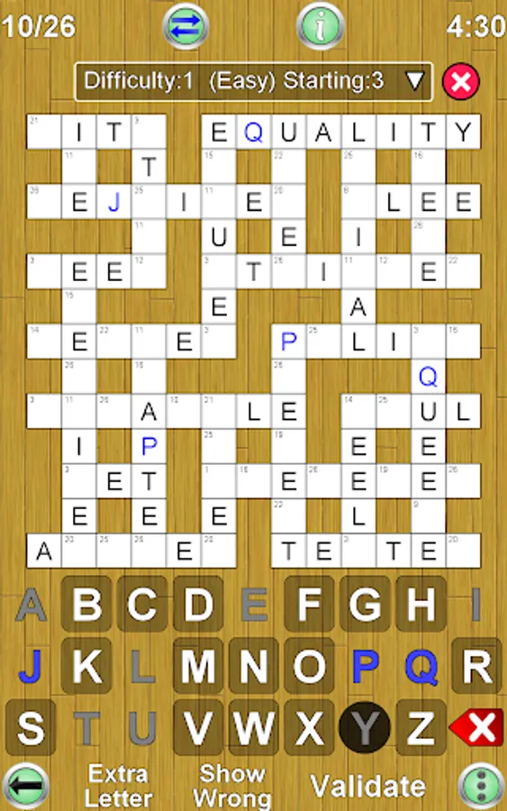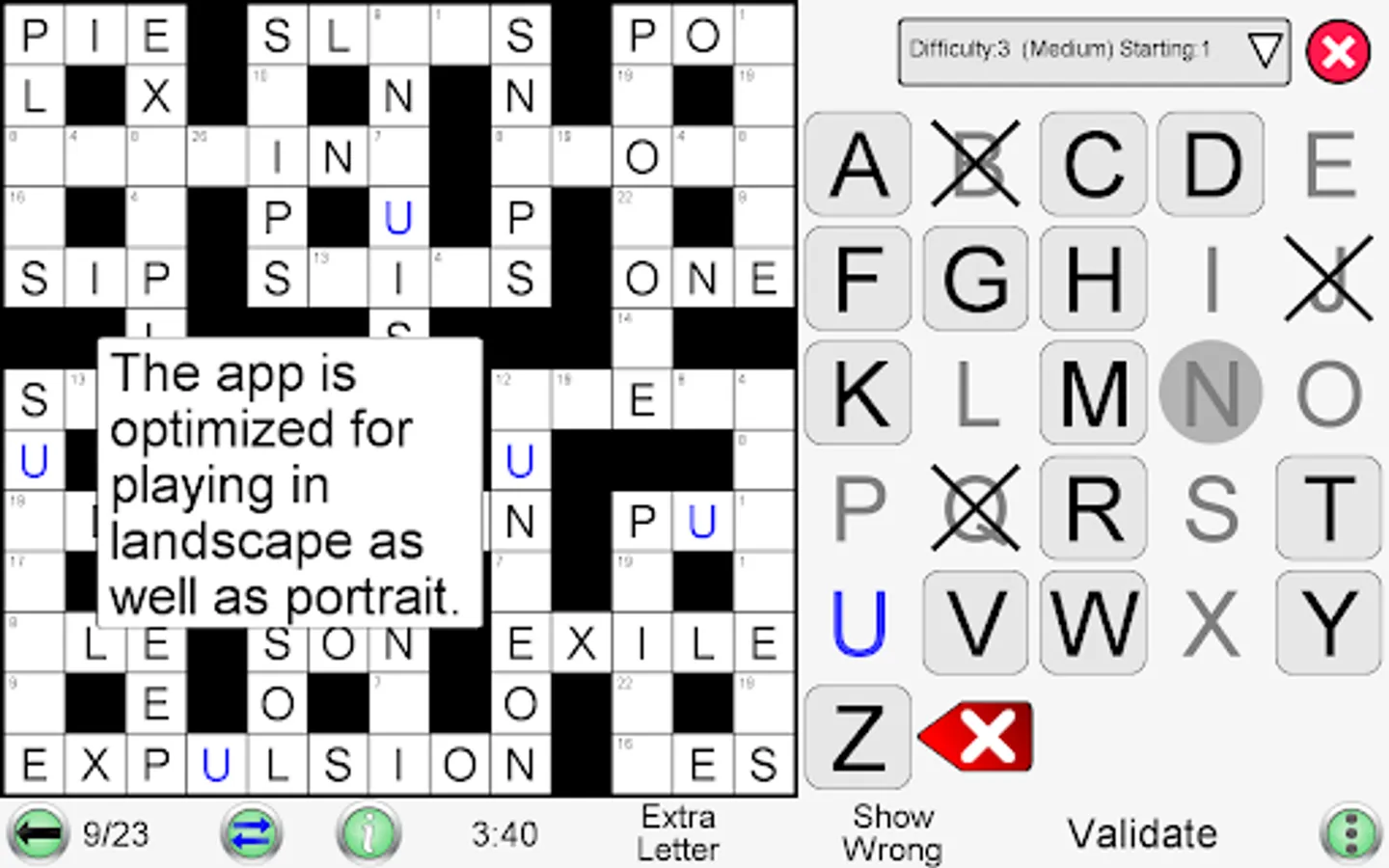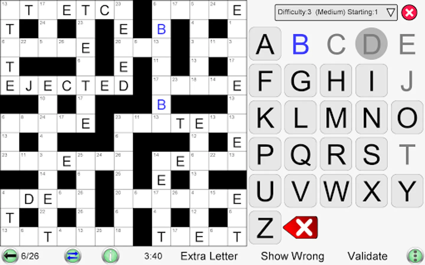 4) Selecting a square in the grid will highlight all places the same letter is used in that grid (i.e. has the same number to decipher). This is really handy and of course not possible when doing codewords in a magazine