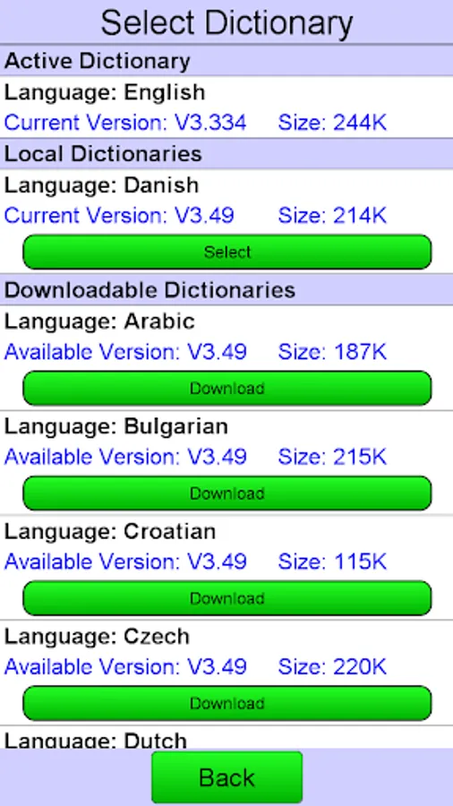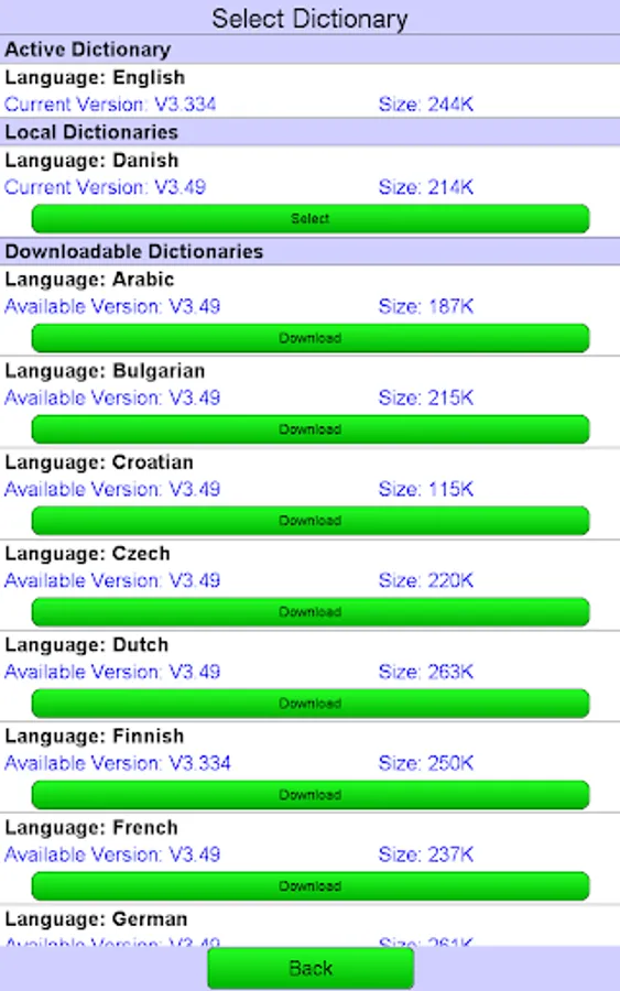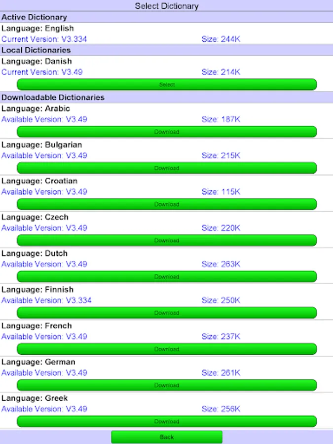9) Choose the language of the word list, from a large range of downloadable dictionaries. 36 languages are currently available (see below)