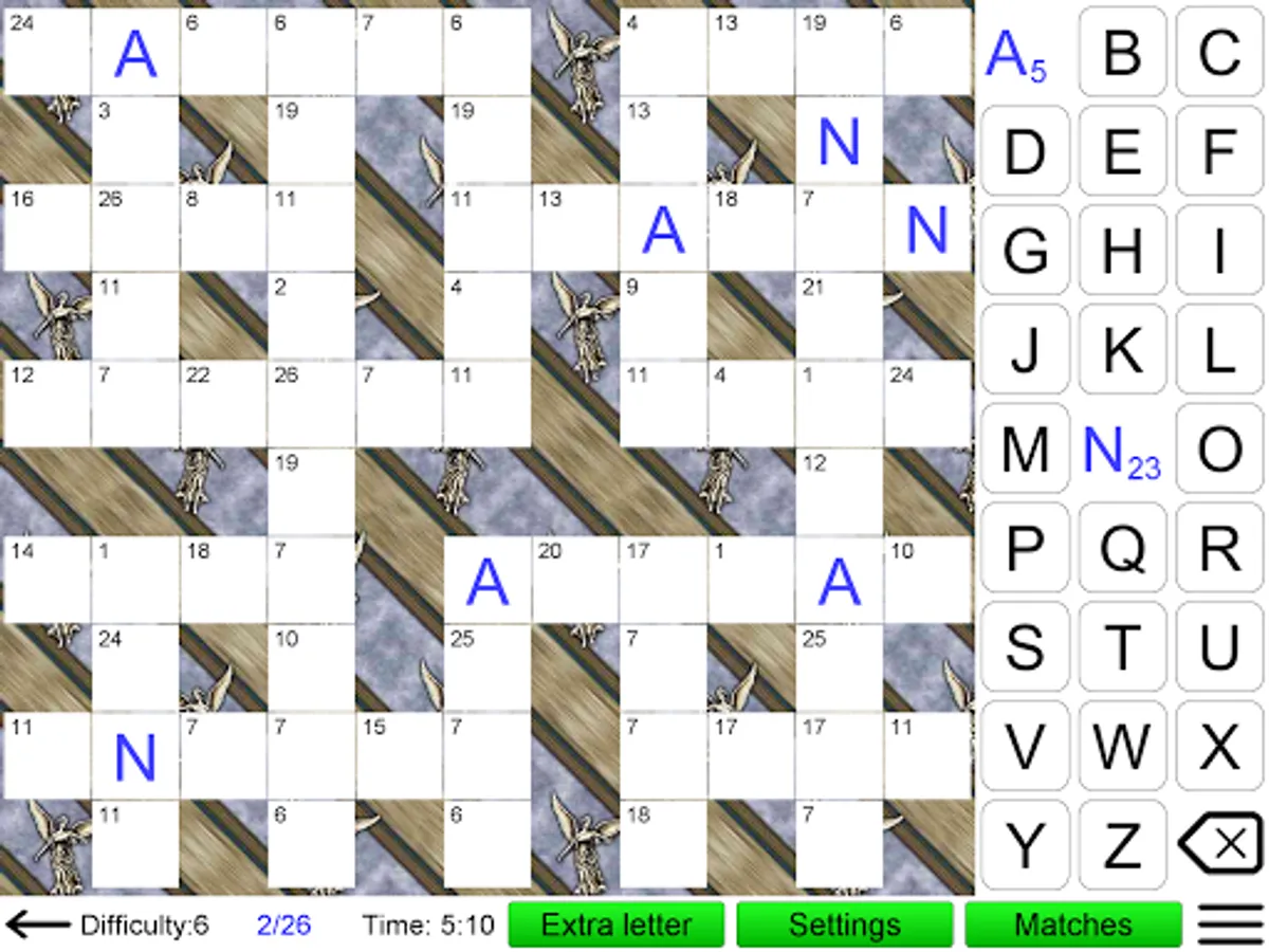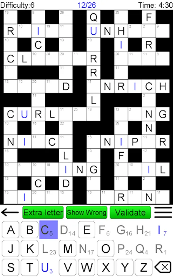 4) Selecting a square in the grid will highlight all places the same letter is used in that grid (i.e. has the same number to decipher). This is really handy and of course not possible when doing codewords in a magazine