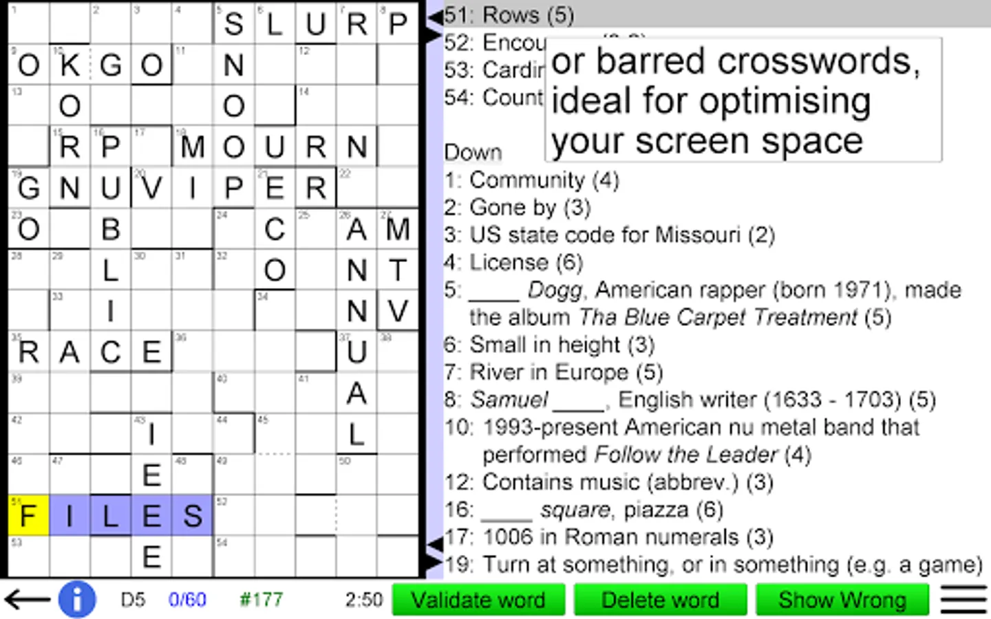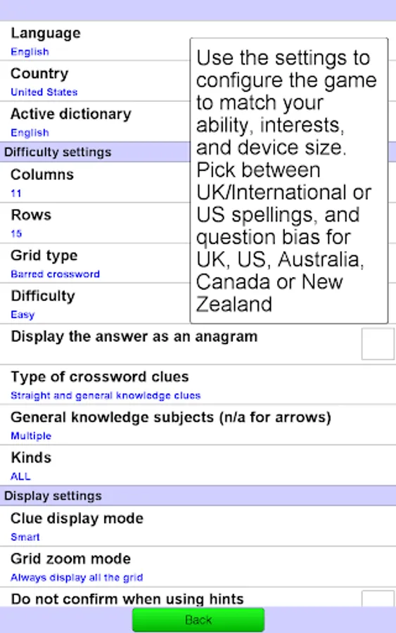 • You can choose from three different types of crossword grid: British, Barred and Arrow