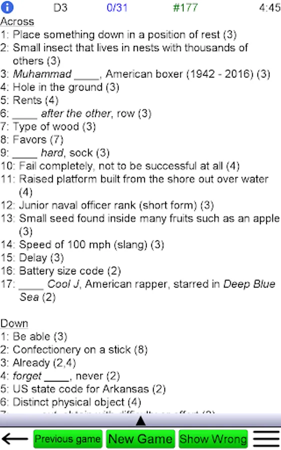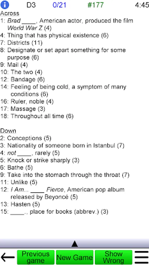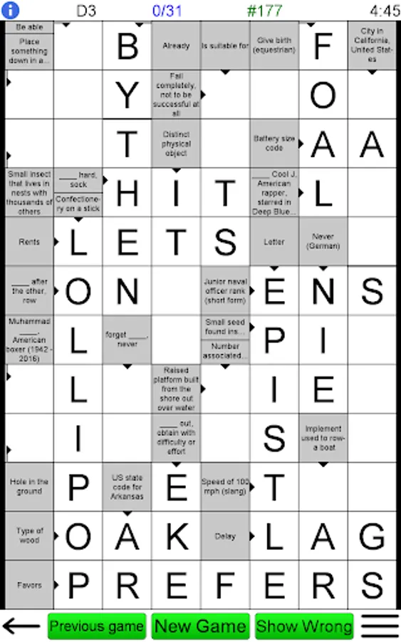 • Ability to save games and reload games. Play many games at once, just like a crossword book!