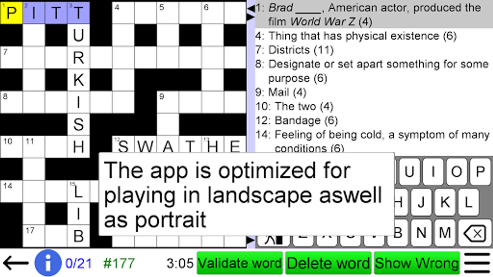 • Generate crosswords tailored to your interests, ability, nationality and device size