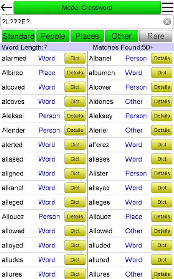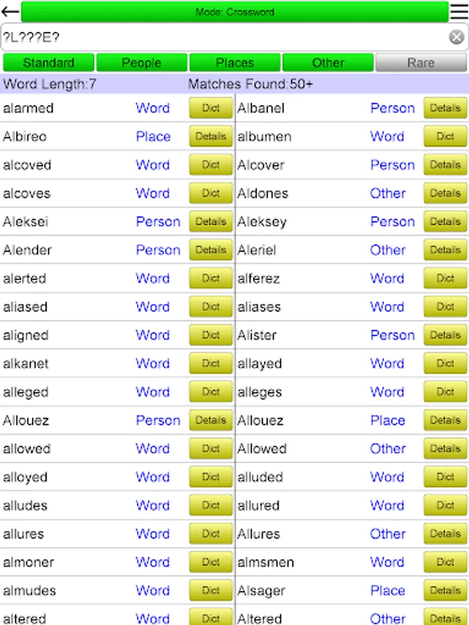 2) Provides filters to reduce the list of possible answers. This is essential when only a few letters are known. E.g. you can filter out rarely used words.