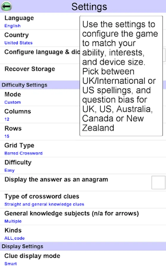 • Generate crosswords tailored to your interests, ability, nationality and device size