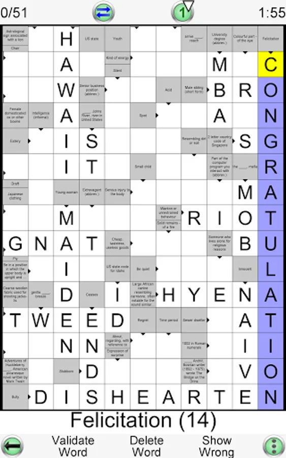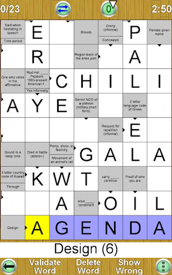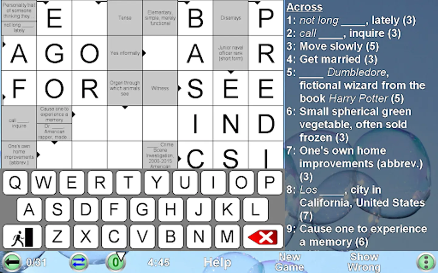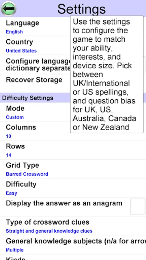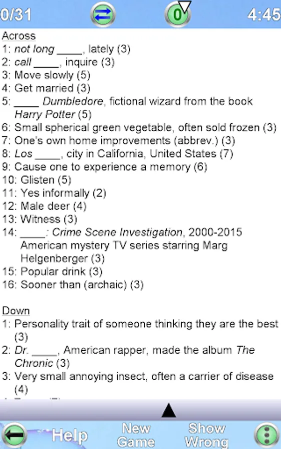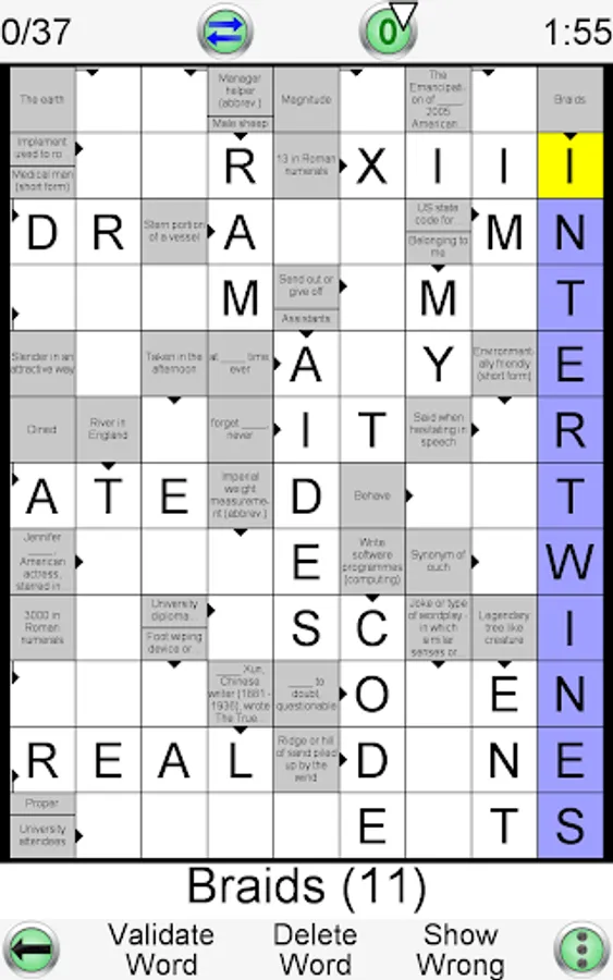 • Each new game is created by the app automatically. Therefore you can play an unlimited number of crosswords!!