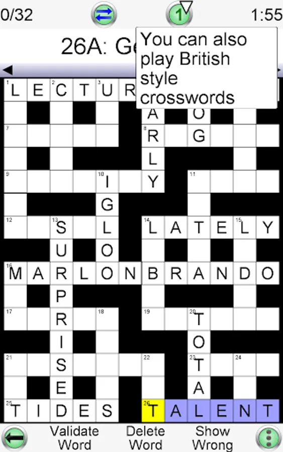 • Many aids to help you complete the crossword