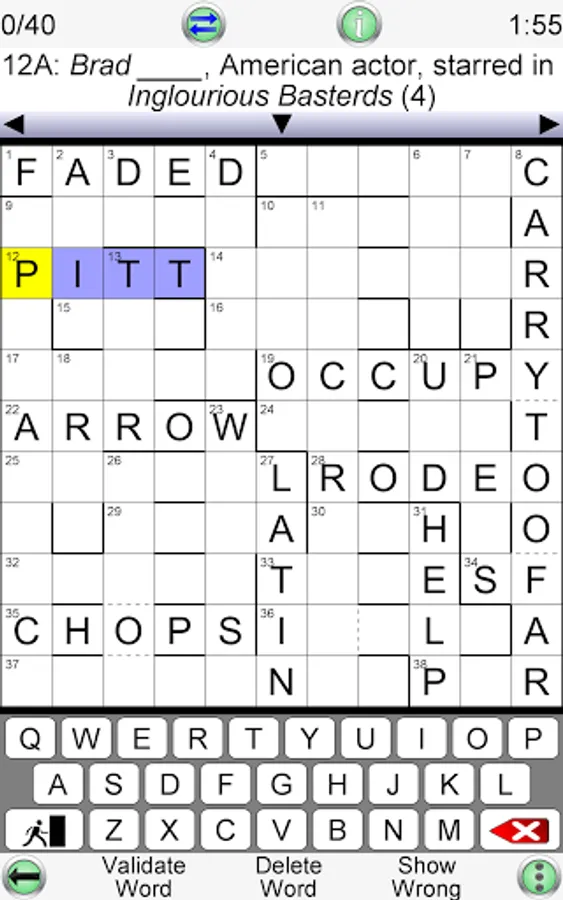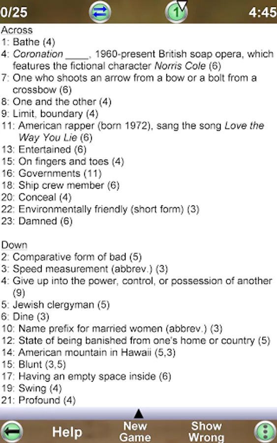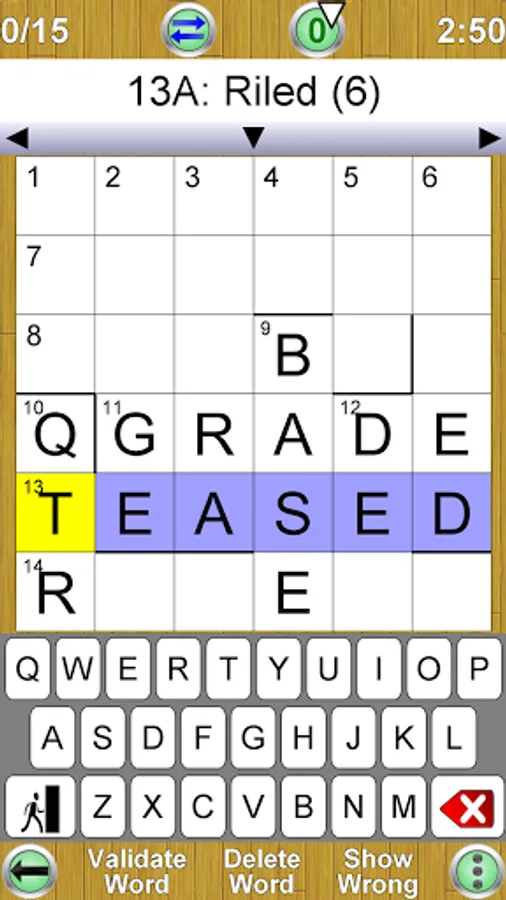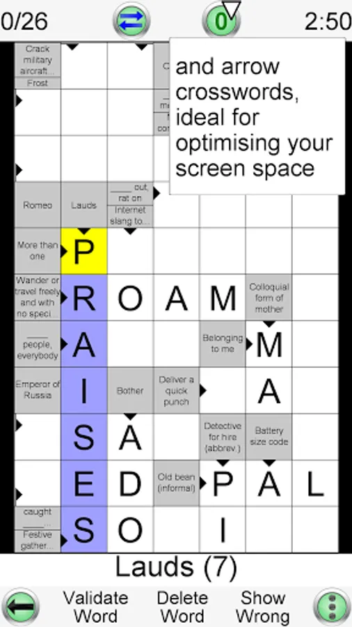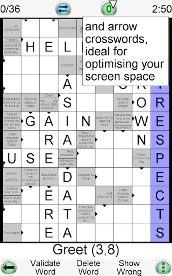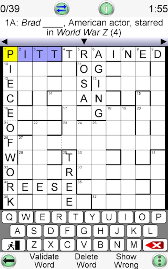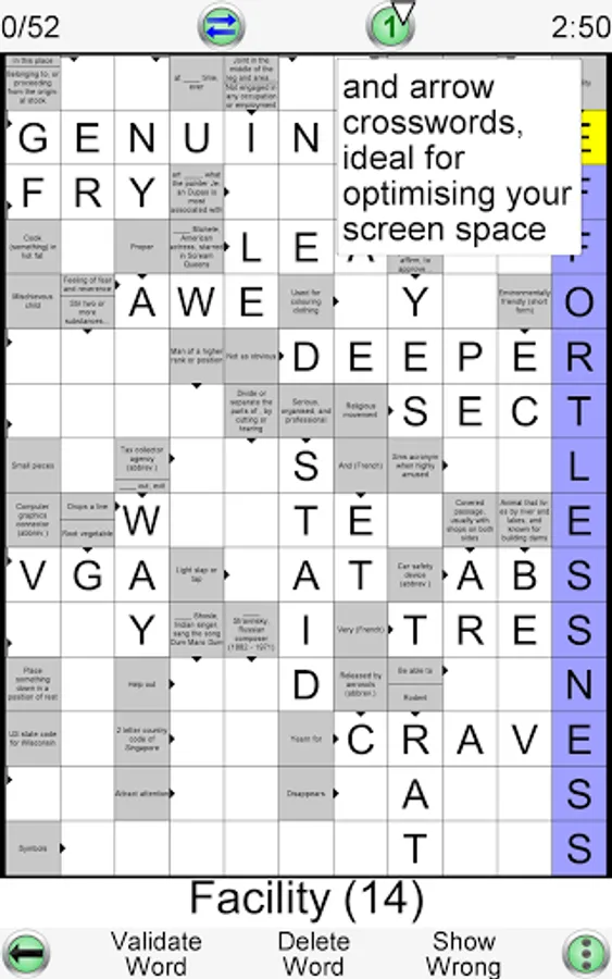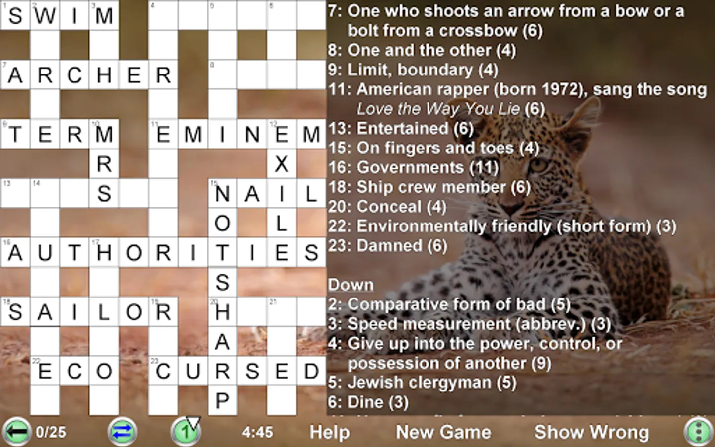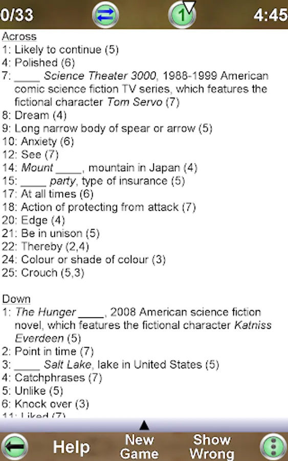 • Each new game is created by the app automatically. Therefore you can play an unlimited number of crosswords!!