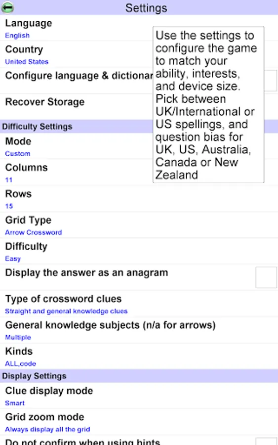 • Generate crosswords tailored to your interests, ability, nationality and device size