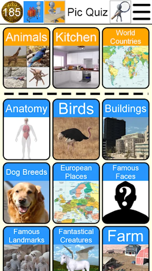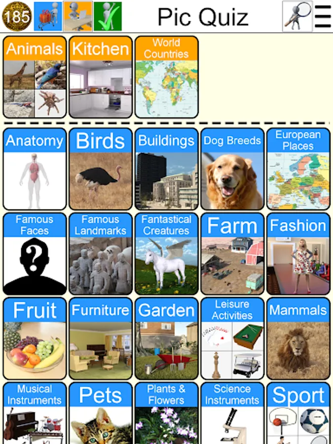 There are many different packs, and they cover a wide range of subjects and interests, with 100's of photos, maps, images and even a logo quiz. Each pack starts easy, but becomes more difficult.