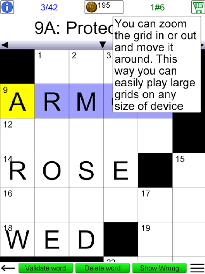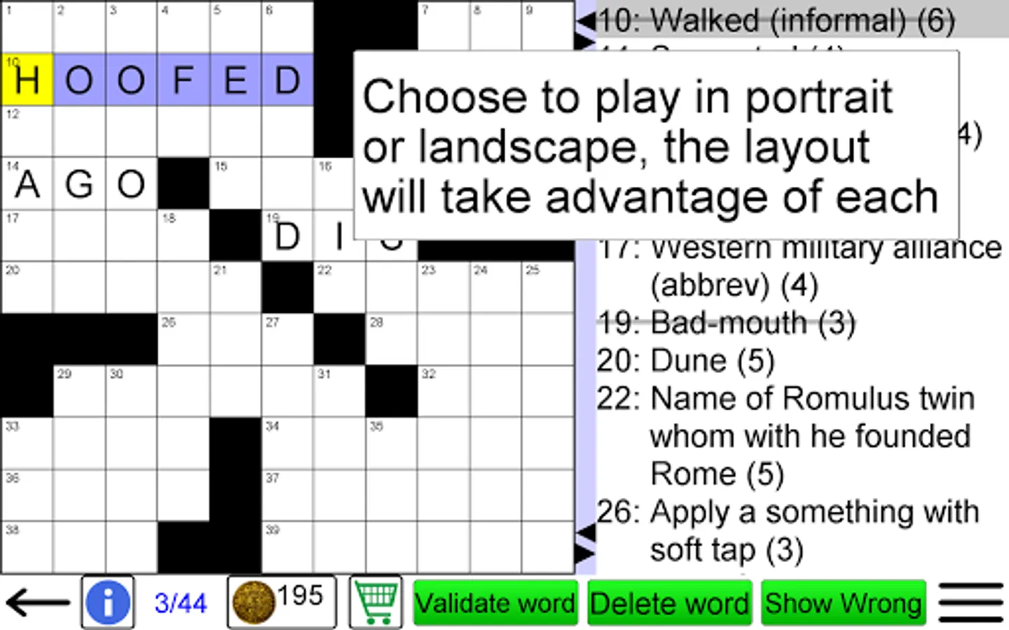 • Numerous aids in case you get stuck, e.g. validate word/letter, reveal word and even a built-in crossword solver to show potential matches