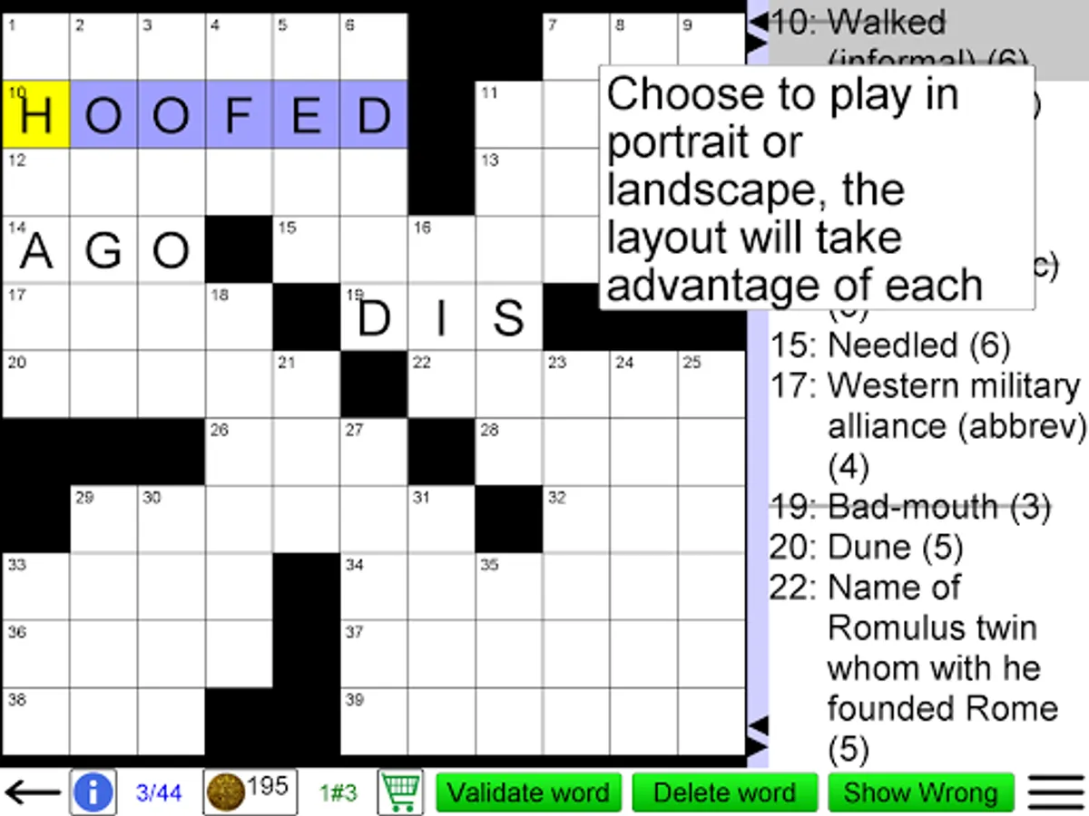 • Easily flip between different crosswords, just like a crossword puzzle book