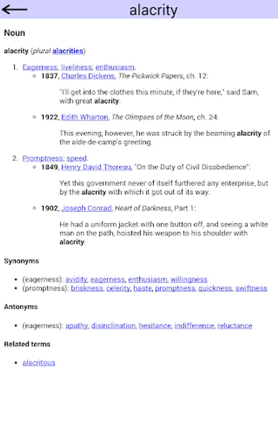 1) View the definition of the word from an online source (e.g. Wiktionary), optimized for viewing on a small screen.