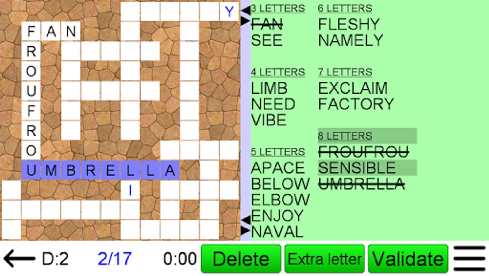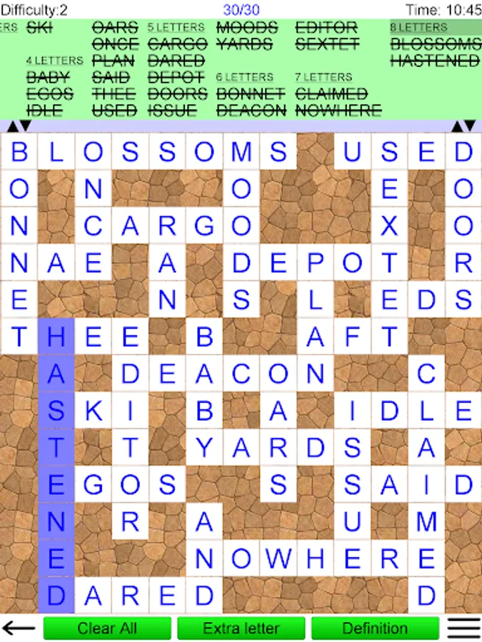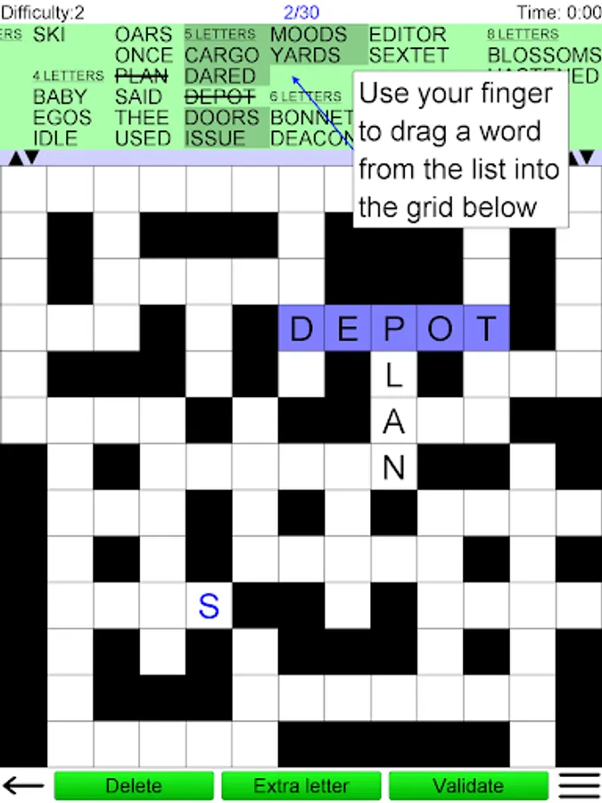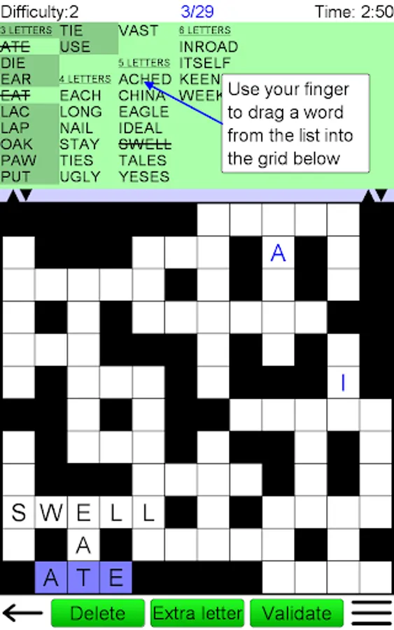 Fit words into a grid in this popular game, often seen in puzzle magazines. The grid looks like a crossword, but there are no normal clues. Instead you must find the right place in the grid for each word from a given list. The game has an easy to use interface. Either drag-and-drop the words to their correct position, or tap the grid and then the word.