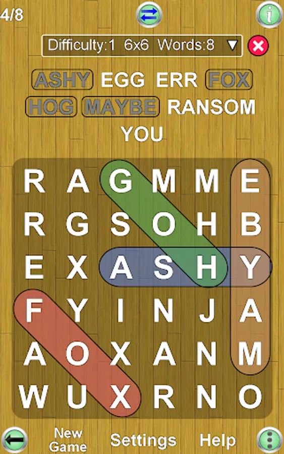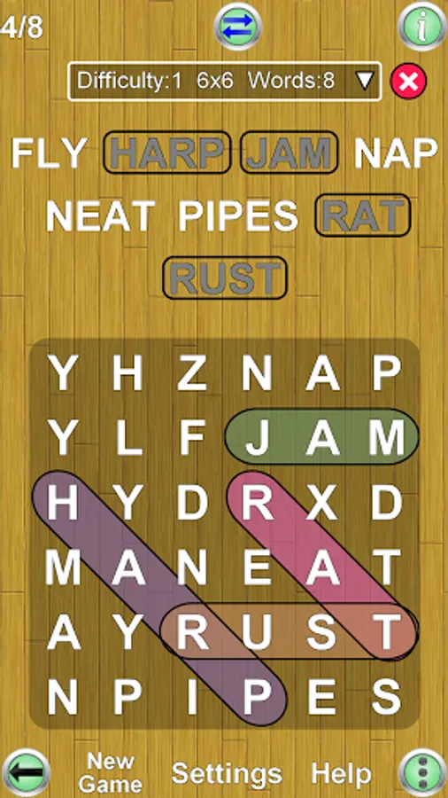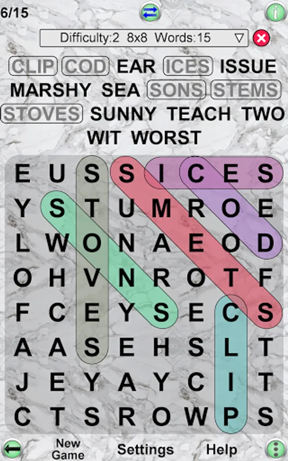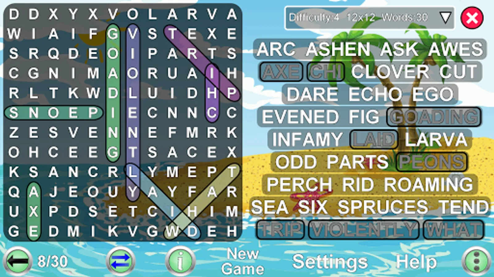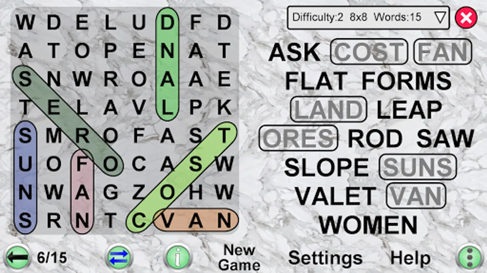 This is the most flexible word search app on the market. Multiple configuration options create a game that exactly corresponds to your device and your expertise.