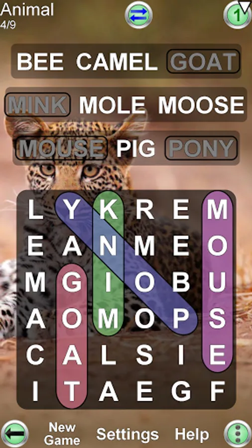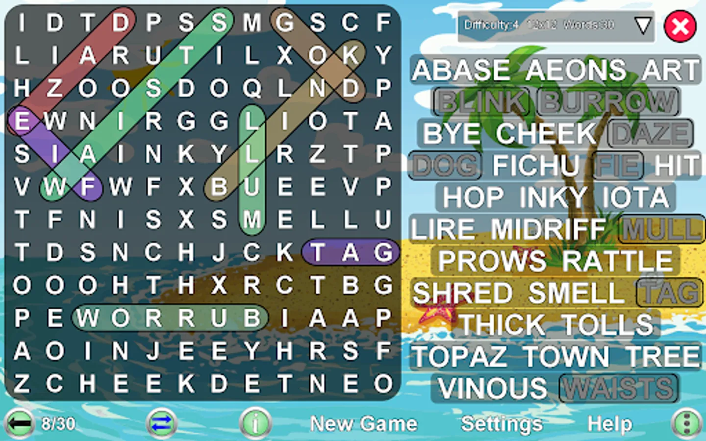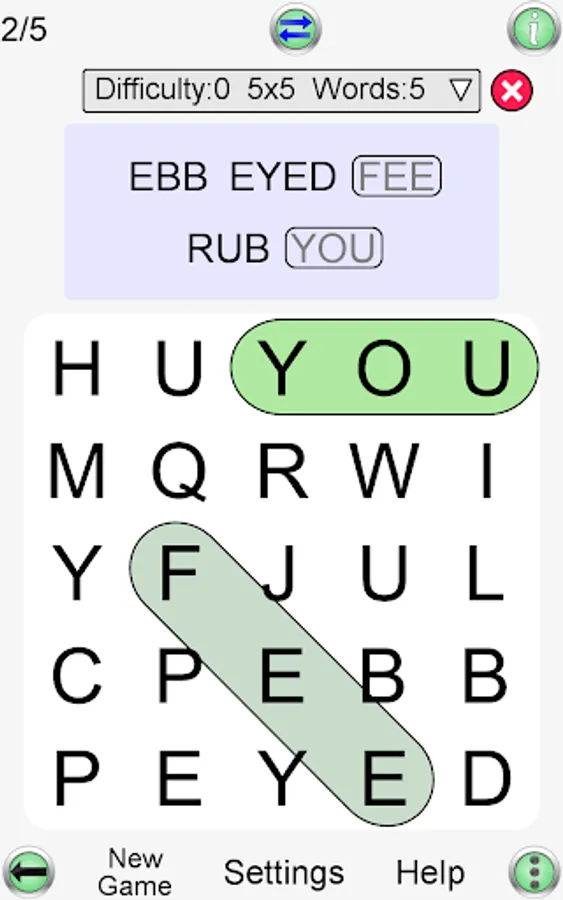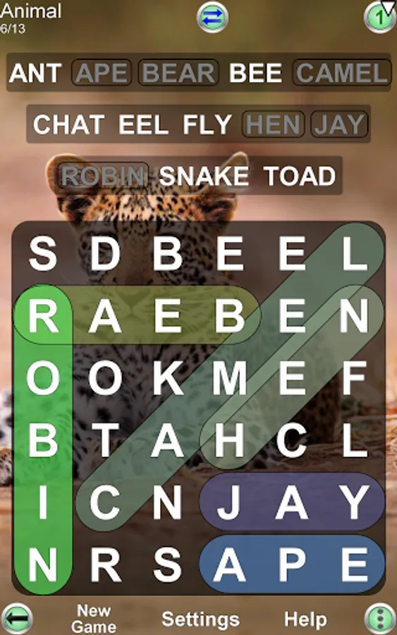 2) Game aid if you are having difficulty. You can choose to reveal a word that you cannot find
