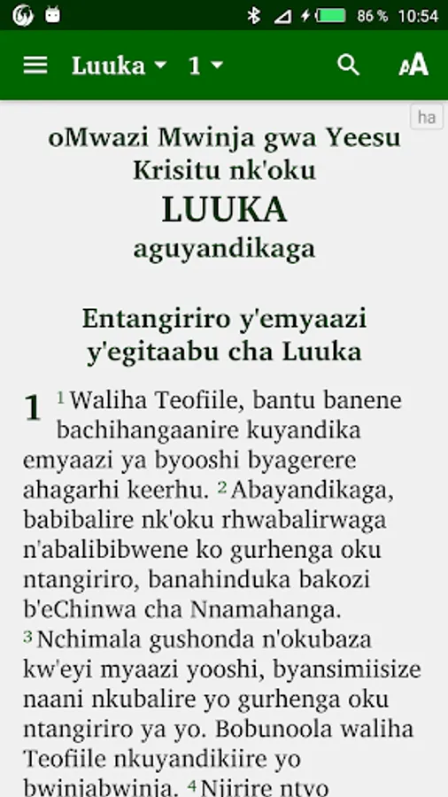 The Word of God the Gospel according to Luke translated into the Havu language (also called Haavu, Kihavu) spoken in the province of Kivu in the Democratic Congo DRC.