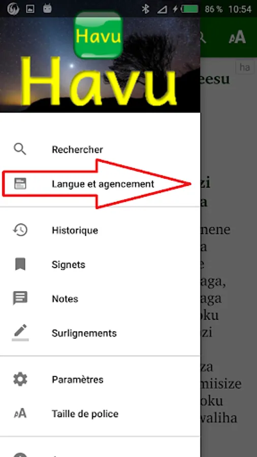 - two panes: to display the Havu at the top and at the same time the French version at the bottom