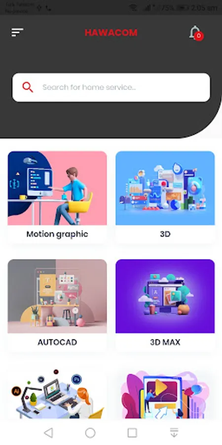 Hawacom is a multifunctional services application, the application provides many services, including design-related services