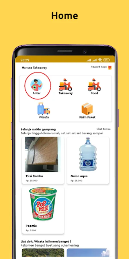 Haway (Hanura Takeaway) is a service application between passengers, goods and food operating in the Hanura village area, Teluk Pandan, Pesawaran Regency. Haway is a group of creative young people in their village, whose role in the local economy is enhanced through the services provided.