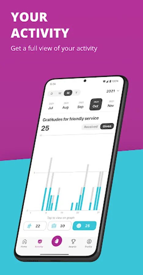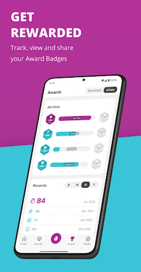 • Earn badges for daily, weekly, monthly and yearly achievements