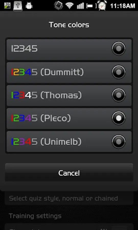 - Tone colors for Hanzi. Select a color scheme to see hanzi in diferent colors depending on their tone.