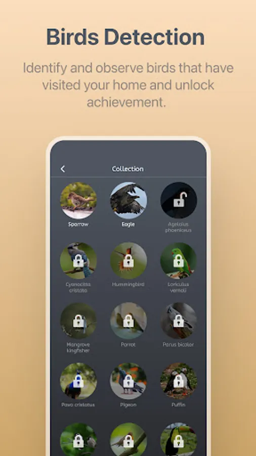 Identify more than 500 species of birds with a Reli device; with the built-in wiki, you can know exactly which kind of birds are around and how to attract or drive them away.