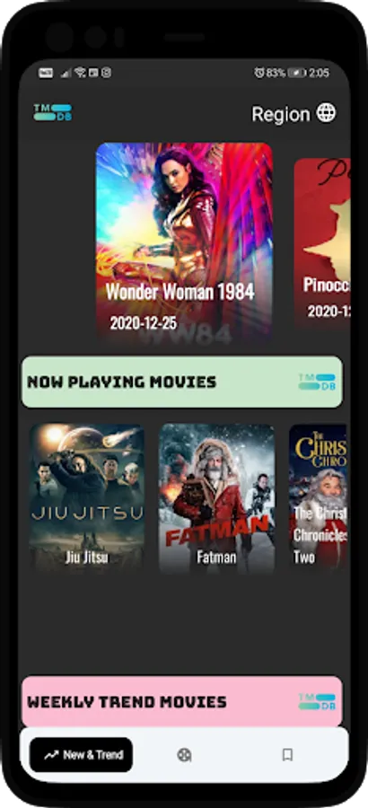 See weekly new releases and trending ones in the Tmdb database