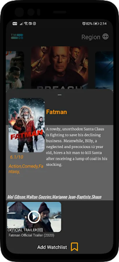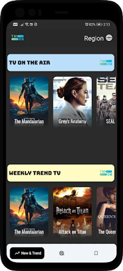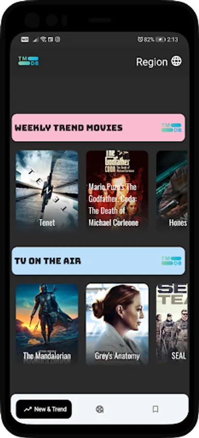 -Follow current movies and TV series from TMDB Database on New Trend screen.