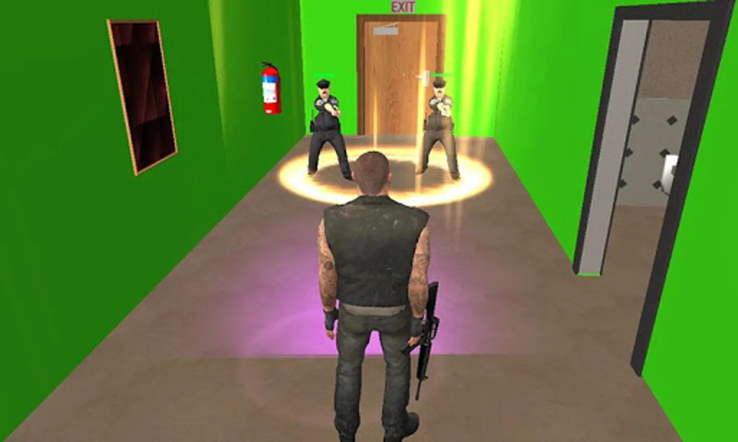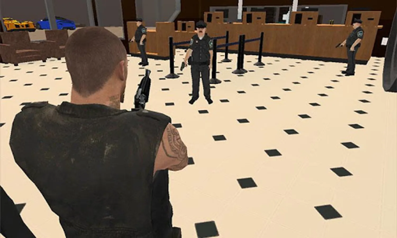 - Realistic 3D Bank Environment with hostage situation of clown robbery escape