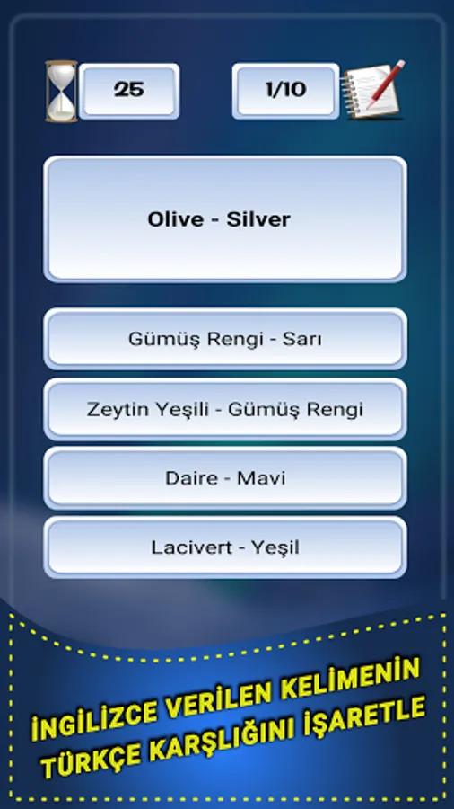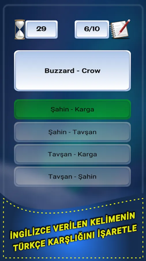 Eğlenceli İngilizce Kelimeler oyunu tamamen ücretsiz olarak İngilizce Kelime öğrenmenize ve ezberlemenize olanak sağlamak amacıyla oluşturulmuştur. Bu oyun sayesinde İngilizce seviyenizi test edebilir ve yeni kelimeler öğrenebilirsiniz.