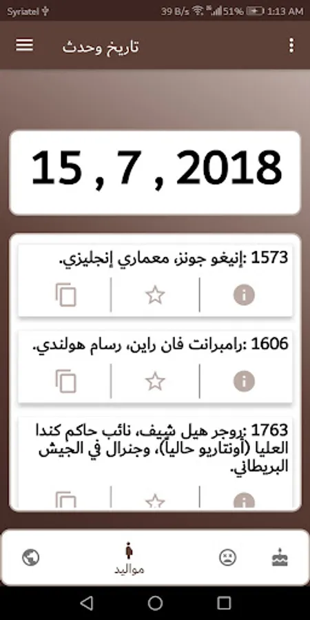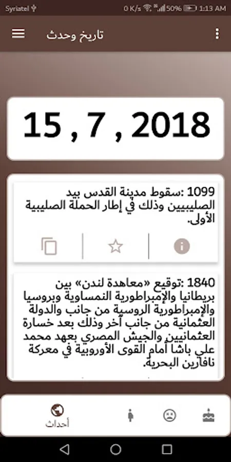 - The application also allows you to review the most important events and festivals that took place on this day.