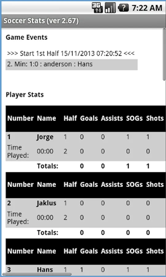 Long Click on Player ICONs to sub IN/OUT quickly. See all 11 players on the screen for quick/easy awarding of stats.