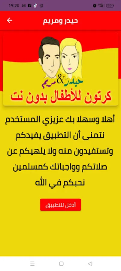 يحتوي التطبيق على حلقات حيدر ومريم حصريا
