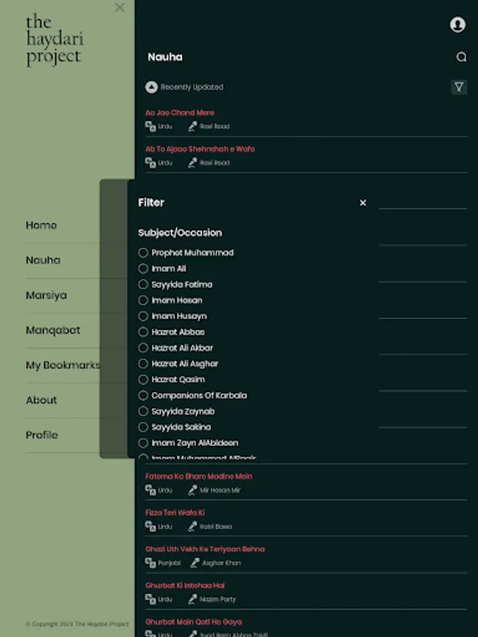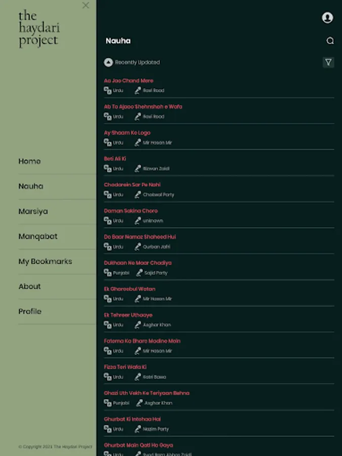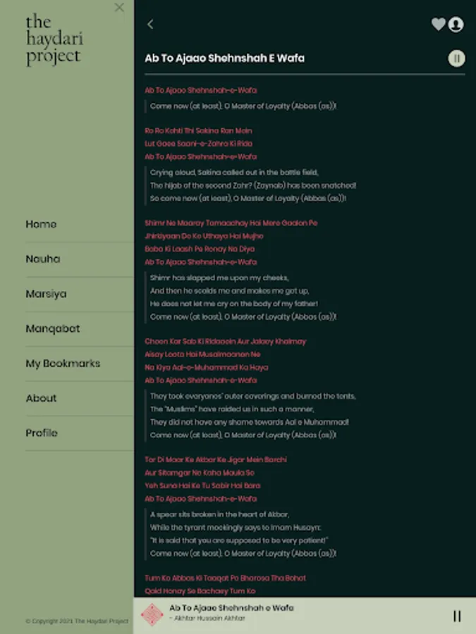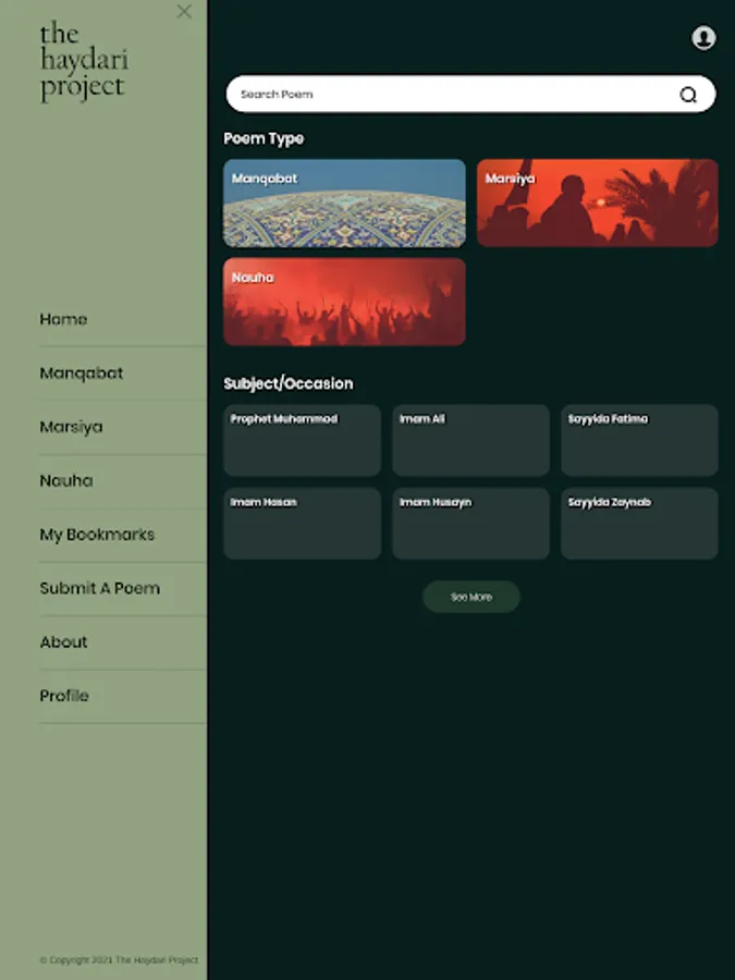 The Haydari Project mobile application was developed for those who hold religious poetry close to their hearts. With hundreds of translated poems (and counting), we aim to bridge the gap between non-native speaking individuals and the poetry they have heard since childhood.