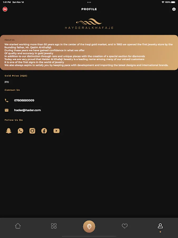 Haider Al-Khafaji Jewelry application is the first of its kind in Iraq and a modernity in the world of jewelry and diamonds.