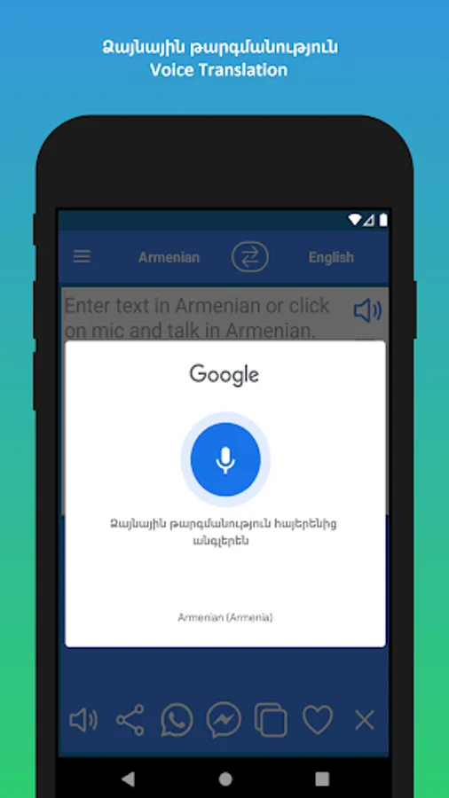 ✓ 3. Voice typing in Armenian. Voice Translation from Armenian to English.