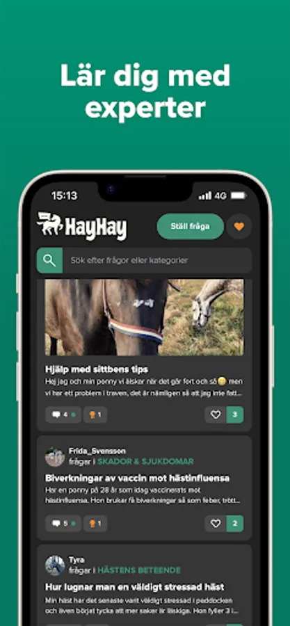 HayHay är ditt hästteam i mobilen! Tackla alla utmaningar i hästvardagen med kunniga experter och vårt community till hands.