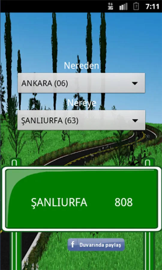 Türkiye'deki şehirlerin birbirlerine olan mesafelerini gösteren bir uygulamadır. Karayolları Genel Müdürlüğü'nden alınan gerçek verilerle çalışılmıştır. Sadece şehirleri seçerek, başka bir tuşa basmaya ihtiyaç duymadan mesafe bilgisini öğrenebilirsiniz. Dilerseniz Facebook duvarınızda mesafe bilgisini paylaşabilirsiniz.